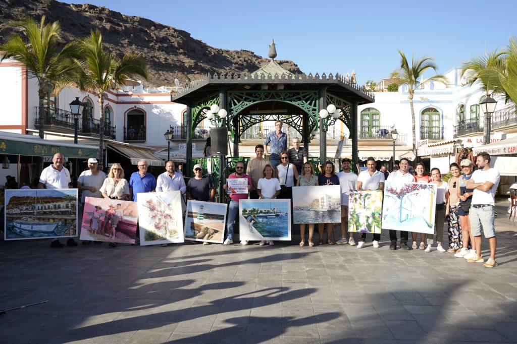 Los coloridos y pintorescos rincones de Playa de Mogán volvieron a conquistar a los artistas nacionales e internacionales que este fin de semana participaron en la duodécima edición del Certamen de Pintura Rápida, organizada por el Ayuntamiento de Mogán. El primer premio, valorado en 1.300 euros, fue para Daniel Álvarez Monzón, que plasmó en el lienzo una soleada jornada de paseo de padre e hijo en el Puerto de Mogán.