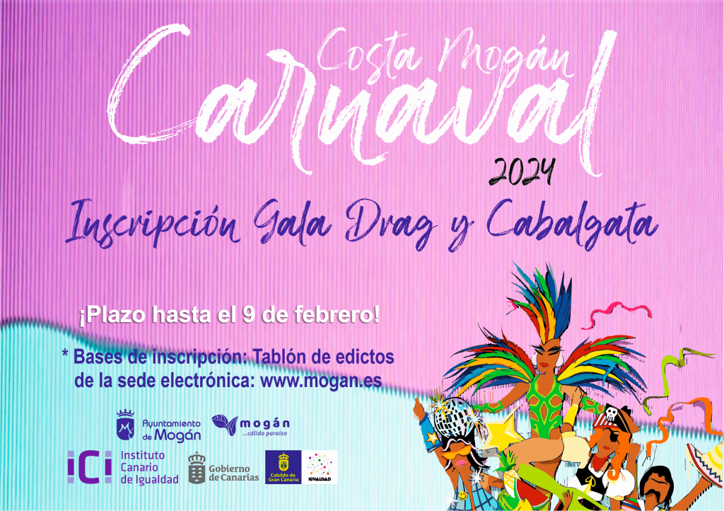 El Ayuntamiento de Mogán mantiene abierto hasta el próximo viernes 9 de febrero el plazo de inscripción de carrozas para la participación en la Cabalgata del Carnaval Costa Mogán 2024 así como para las personas interesadas en concursar en la Gala Drag.
