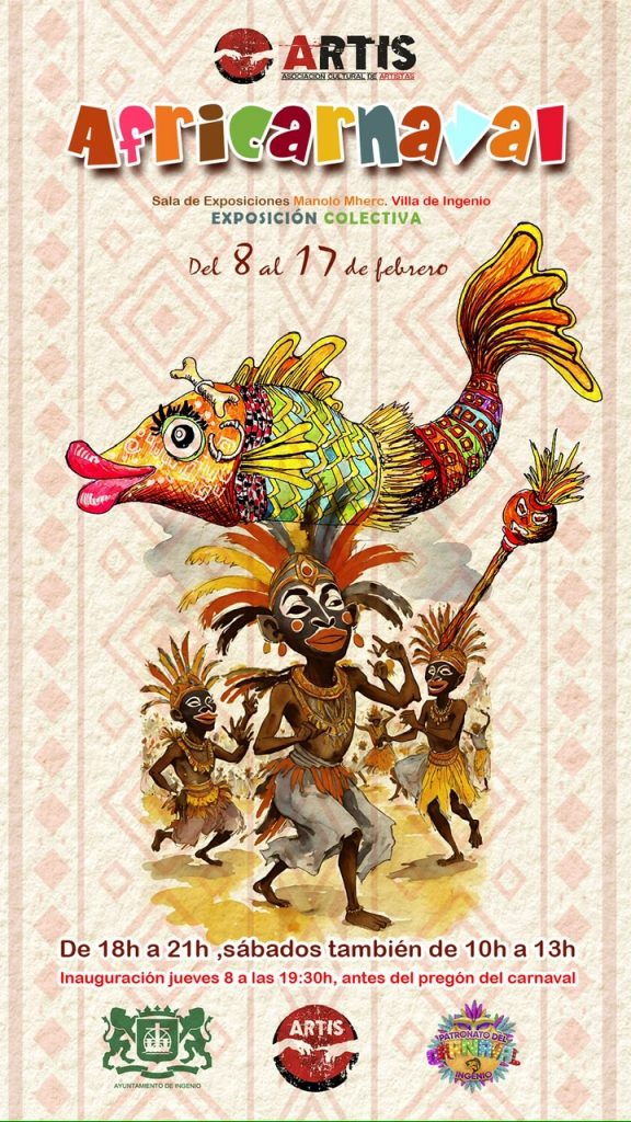 La exposición colectiva “Africarnaval”, organizada por la Asociación de Artistas, con sede en Villa de Ingenio, ARTIS, se abrirá al público este jueves, 8 de febrero, en la Sala de Exposiciones Manolo Mherc del Centro Cultural ‘Federico García Lorca’. La inauguración será a las 19:30 horas, justo antes del inicio del pregón del Carnaval de Ingenio 2024.