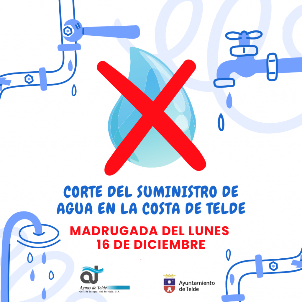 La empresa mixta Aguas de Telde, participada por el Ayuntamiento de Telde y Canaraguas S.A., llevará a cabo el cierre del suministro de agua a la costa de la ciudad, durante la madrugada del próximo 16 de diciembre. El corte pertinente se debe a la instalación de un bypass en el depósito de Nareas, una acción que permitirá mejorar las labores de mantenimiento del citado depósito, así como garantizar el suministro a todo el litoral teldense en caso de cualquier incidencia del mismo.