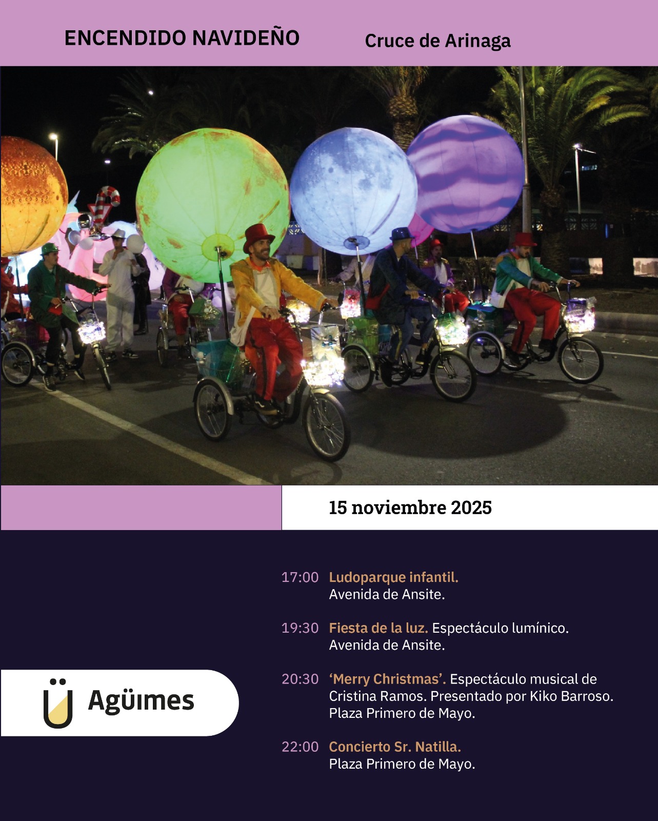 El próximo sábado 15 de noviembre, un mar de luces inundará el Cruce de Arinaga para dar la bienvenida al período navideño, con el encendido oficial del alumbrado. La ‘Fiesta de la Luz’, que tendrá lugar a las 19:30 en la avenida de Ansite, promete deslumbrar a vecinos y visitantes en un ambiente festivo para toda la familia.
