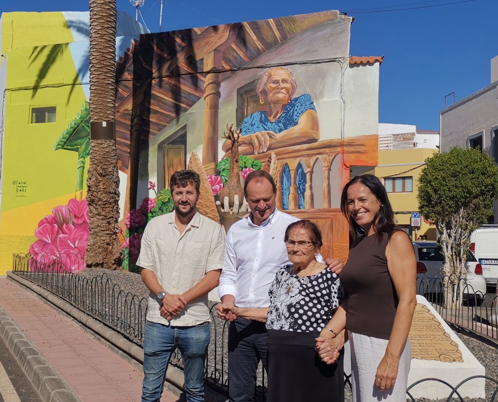 Agüimes luce un nuevo mural en homenaje al patrimonio histórico y a la vecina Carmen Tarajano
