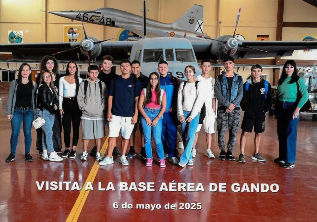 Estudiantes de 4º de ESO y de 2º del Programa de Diversificación Curricular del municipio de Mogán han disfrutado de una visita a la Base Área de Gando, en la que se ubica el Ala 46 del Ejército del Aire y del Espacio.