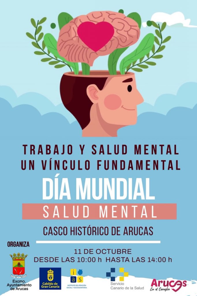 El próximo 11 de octubre de 2024, Arucas será escenario del XVII Encuentro del Día Mundial de la Salud Mental, con un programa lleno de actividades que buscan sensibilizar a la población sobre la importancia del bienestar mental. Organizado por el Ayuntamiento de Arucas, junto con el IASS,  y la colaboración del SCS y diversas entidades de salud, este evento tiene como objetivo fomentar una mayor conciencia sobre el vínculo entre el trabajo y la salud mental.