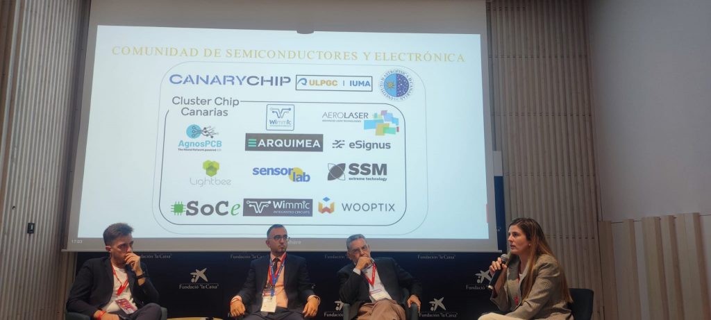 Canarychip lideró este lunes la mesa redonda bajo el título “Innovación Canaria en Microelectrónica y Semiconductores”, sesiones con empresas e instituciones canarias destacando casos de éxito en semiconductores. Participaron especialistas clave del ecosistema en Canarias, como son el manager de Celestia Wimmic, Braulio Quintana; el project manager de Wooptix, Roberto Pangallo; el catedrático emérito y fundador del IUMA, Antonio Núñez; y la delegada de Proexca en Madrid, Elena Forniés Beltrán, quien presentó las ventajas que presenta Canarias como hub para este sector.