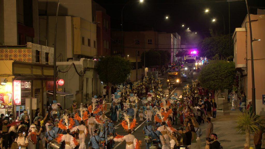 Tras partir desde la Plaza de la Jurada, miles de mascaritas y 16 carrozas acompañaban a la sardina en su recorrido hasta la Playa con el sonido de las murgas Los Legañosos y Los Legañositos. A la participación de una comparsa y de una batucada se sumó la imaginación de los grupos de disfraces que animaron la Cabalgata. Entre el público pudimos ver al mismísimo Carlos III y con él, viudas desconsoladas, corsarios, vaqueros, la mini carroza con el Dios Zeus, digna representante de La Fiesta de los Dioses y hasta una lograda representación de la mismísima Feria de Abril. La plataforma Justicia Social de Carrizal, que visibilizaba su reivindicación con el lema “El cable por el barranco”, también se hacía presente junto al resto de la comitiva, sin olvidar a Antonio Gómez, la bailarina del Hula Hoop que desde el 95 alegra el Carnaval.