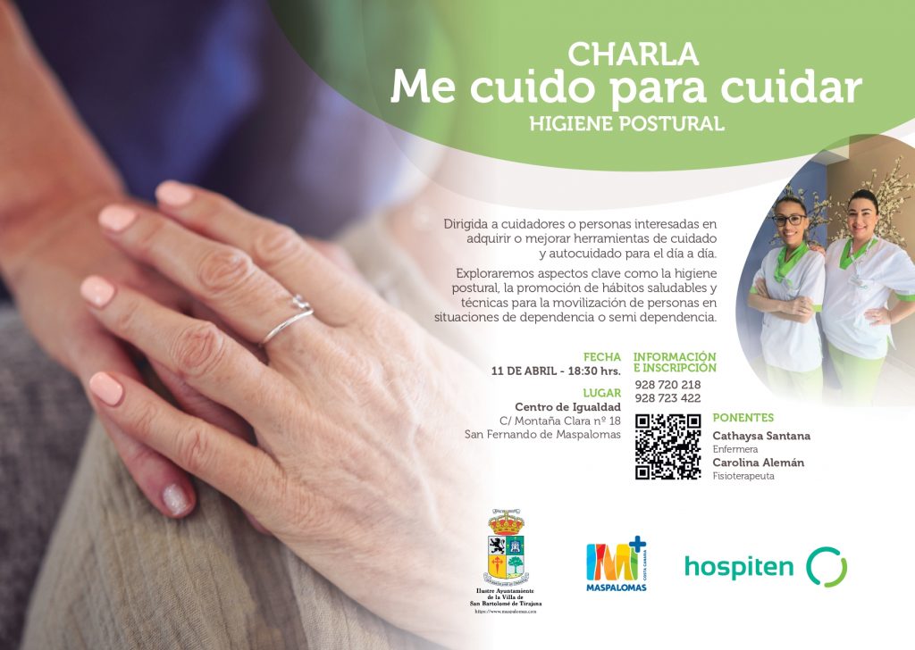 La Concejalía de Igualdad del Ayuntamiento de San Bartolomé de Tirajana agenda para el próximo 11 de abril una charla sobre higiene postural dirigida a personas cuidadoras o interesadas en aprender o mejorar las técnicas y procedimientos a la hora de cuidar o de atender el propio autocuidado personal.