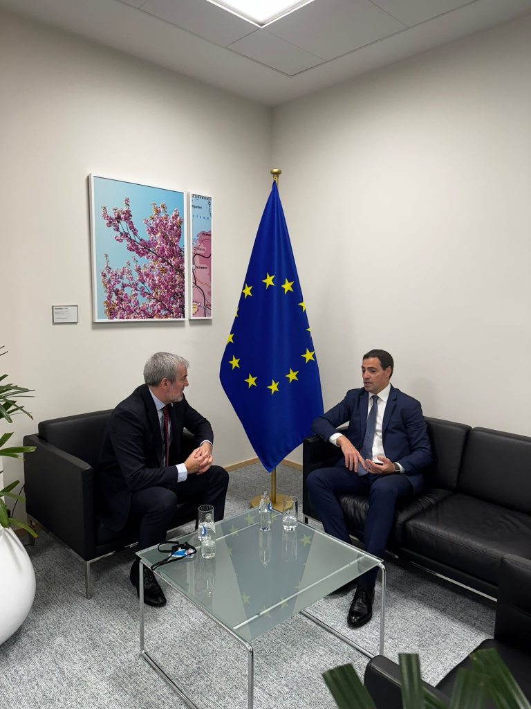 Durante su reunión en Bruselas con Metsola, el presidente del Gobierno canario ha subrayado la reafirmado la apuesta del archipiélago por avanzar hacia un modelo de desarrollo que mejore la distribución de riqueza y afronte el reto demográfico que afecta a 47 municipios.