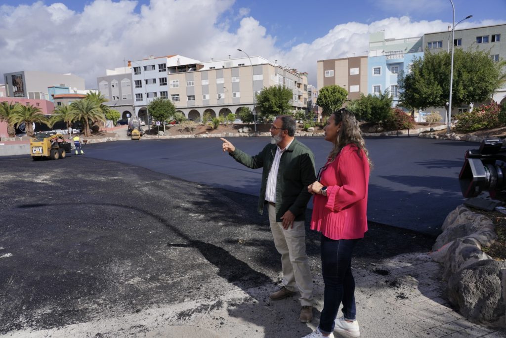 Continúan las obras del plan de asfalto municipal que se está realizando con un importe de 467.289 euros provenientes del convenio con el Cabildo de Gran Canaria a partir de los Fondos para el Desarrollo de Canarias (Fdcan) en un 50 por ciento y la otra mitad de presupuesto municipal. El alcalde de Santa Lucía de Tirajana, Francisco García, acompañado de la concejala de Obras Públicas, Minerva Pérez, visitó este miércoles las obras del asfaltado del aparcamiento que está en la trasera del teatro Víctor Jara. El primer edil anunció que ya se está redactando un nuevo plan de asfalto con un presupuesto de un millón de euros.