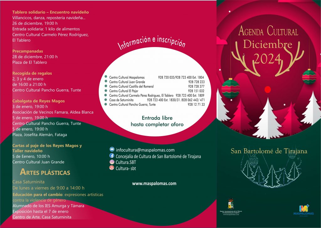 Las propuestas culturales agendadas por la Concejalía de Cultura del Ayuntamiento de San Bartolomé de Tirajana para este mes de diciembre tienen a la Navidad y la solidaridad vecinal como protagonistas. Desde este lunes, por ejemplo, ya se ha iniciado la tradicional campaña de recogida de juguetes en el Centro Cultural Pancho Guerra, en Tunte.