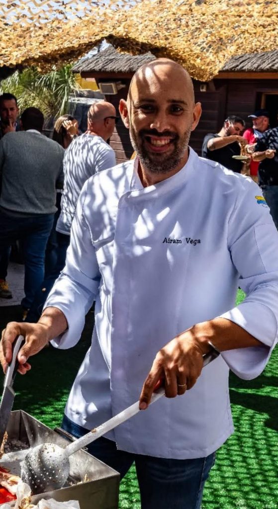Airam Samuel Vega Martel representa la continuidad de una historia profundamente vinculada al barranco de Guayadeque. El Restaurante Vega nació en 1981, cuando una cueva tradicional fue transformada por su familia en un bar-restaurante que, con el paso de los años, se convirtió en un emblema de la cocina tradicional canaria. Tras el fallecimiento de su padre, Manuel Vega, Airam, el menor de cinco hermanos, asumió la responsabilidad del negocio con apenas 20 años, con una premisa clara: seguir con el legado de su padre, plasmando todo lo que le había enseñado, y seguir mejorando poco a poco sin perder la esencia y ese trato cercano. Platos como el célebre cochino a la sal, surgido inicialmente como una receta familiar para celebraciones, o la carne de cabra al estilo canario, forman parte de una carta que mantiene viva la memoria gastronómica del lugar, basada en platos caseros como las papas arrugadas con mojo, ropa vieja, entre otros guisos que evocan la cocina de antaño.