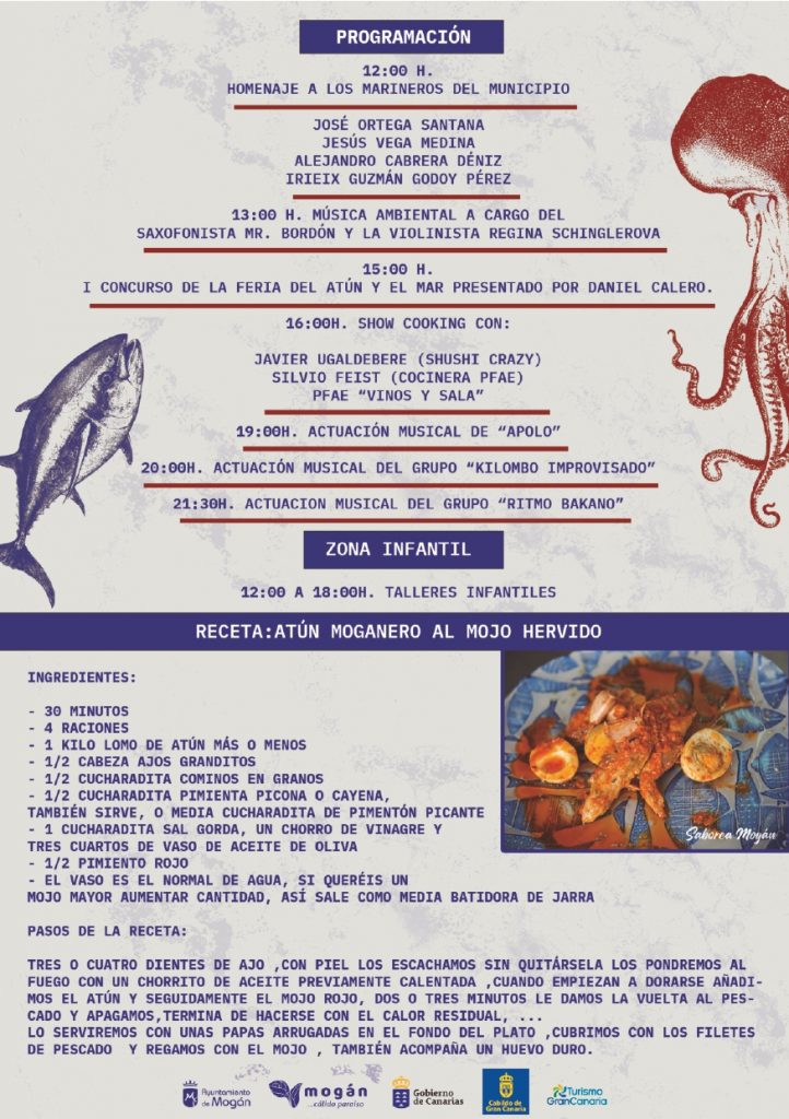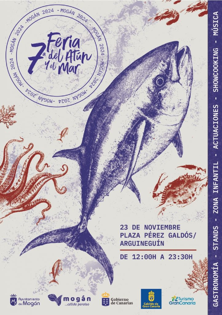 La plaza Pérez Galdós de Arguineguín acoge el próximo sábado 23 de noviembre la Feria del Atún y el Mar de Mogán, evento que celebra su séptima edición con showcooking, degustación, venta de elaboraciones culinarias y de pescado fresco, homenaje a cuatro marineros del municipio, concurso entre los y las asistentes, talleres infantiles y música en vivo.