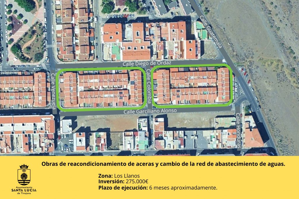 El Ayuntamiento de Santa Lucía de Tirajana ha invertido 275.000 euros en las obras de mejora de las aceras y el pavimento de la red viaria del  barrio de Los Llanos. Las obras servirá para ampliar las aceras y mejorar  el pavimento.