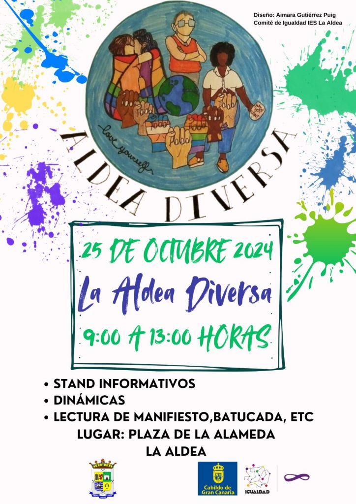 El Ayuntamiento de La Aldea de San Nicolás organiza este viernes, día 25 de octubre, la jornada ‘La Aldea Diversa’, un acto enmarcado dentro del proyecto ‘La Aldea Diversa’, financiado por la Consejería de Gobierno de Política Social, Accesibilidad, Igualdad y Diversidad del Cabildo de Gran Canaria, cuyo objetivo principal es promover el respeto y la justicia social con la diversidad sexual y de género.