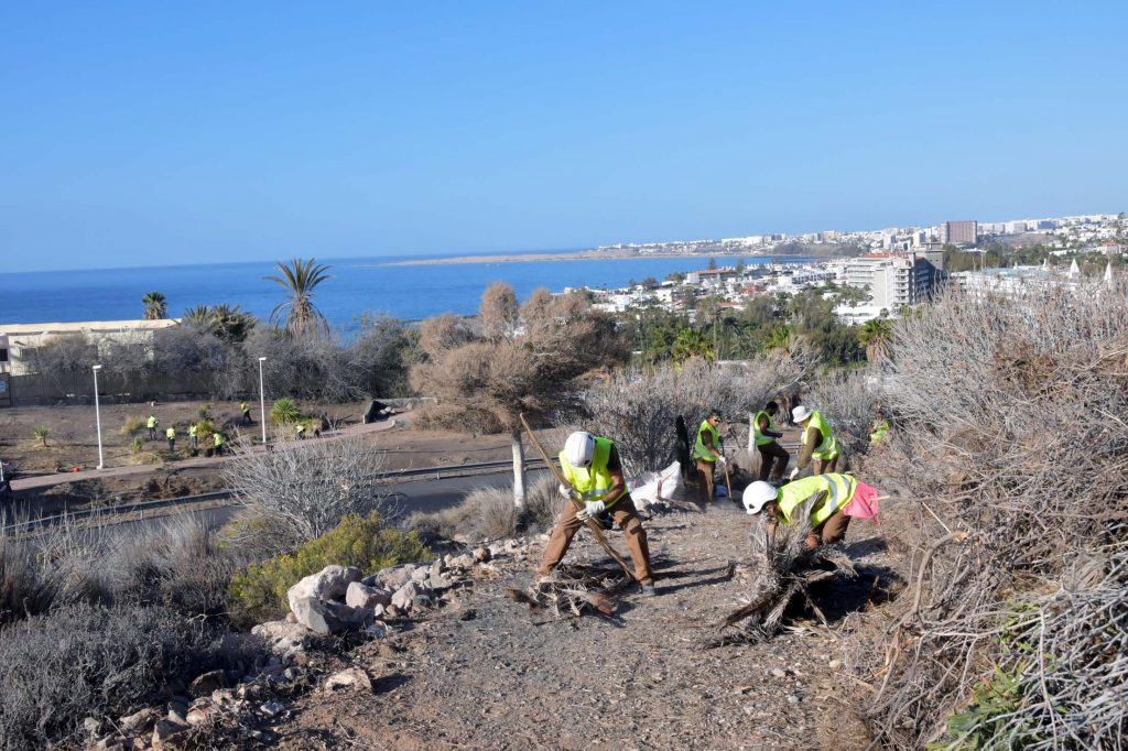 Desde su puesta en marcha, este Plan de Empleo ya ha operado con efectividad en la zona del Paseo de Meloneras y está previsto que, al término de los trabajos que ahora se están efectuando en Morro Besudo, se intervenga con mayor precisión en el Mirador de Maspalomas y también en distintas zonas del Campo Internacional, entre otras.