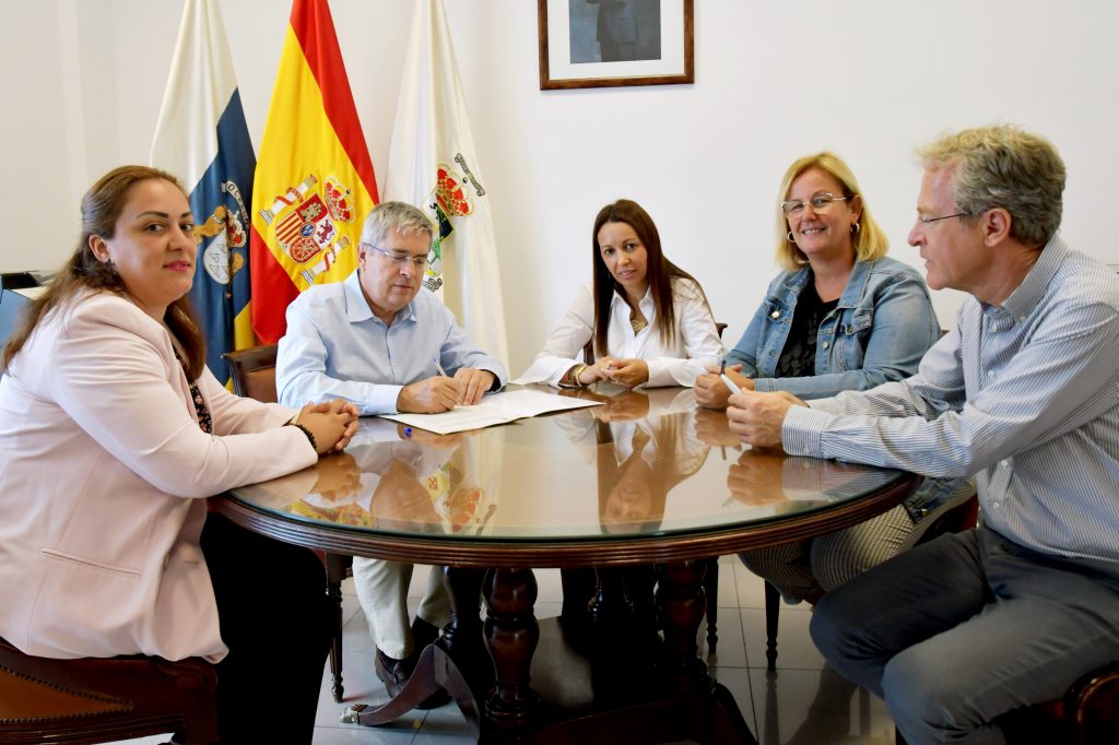 El acuerdo lo han ratificado el alcalde Marco Aurelio Pérez Sánchez y las responsables de la dirección del departamento de Recursos Humanos de Princess Hotels Canarias, Lorena Rodríguez y Hind Qumghar, en presencia del secretario general del Consistorio y de la segunda teniente de alcalde y concejala de Igualdad y Diversidad, Elena Álamo Vega, como impulsora del convenio.