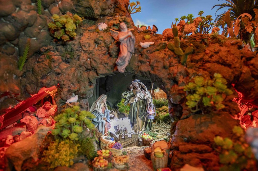 Entre estas unos majestuosos arcos que bordean gran parte del portal y que le otorgan la apariencia de ciudad amurallada. Si el pasado año figuras de terracota vestían la indumentaria tradicional del Archipiélago, esta vez sorprenden figuras hebreas que ambientan un hermoso escenario cuidado al detalle. No faltan casonas canarias, palmeras, molinos, plataneras, cestos de frutas y verduras, todo tipo de animales y utensilios empleados en las labores propias del trabajo en la tierra y hasta un peculiar grupo jugando a la baraja. Pero además, es posible observar cómo el Belén pasa progresivamente del día a la noche, haciendo de la experiencia todavía más especial.