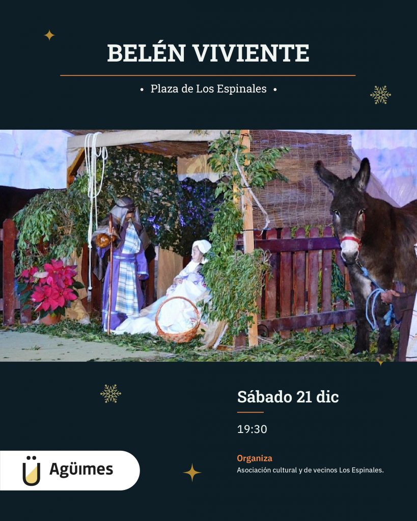 El municipio de Agüimes se prepara para vivir un intenso fin de semana previo a la Navidad, repleto de actividades dirigidas a todos los públicos. Música, bailes, talleres y espectáculos infantiles forman parte de la programación diseñada para estos días por el Ayuntamiento de Agüimes, en la que destaca por encima del resto un evento más que singular: la escenificación del tradicional Belén Viviente de Los Espinales.