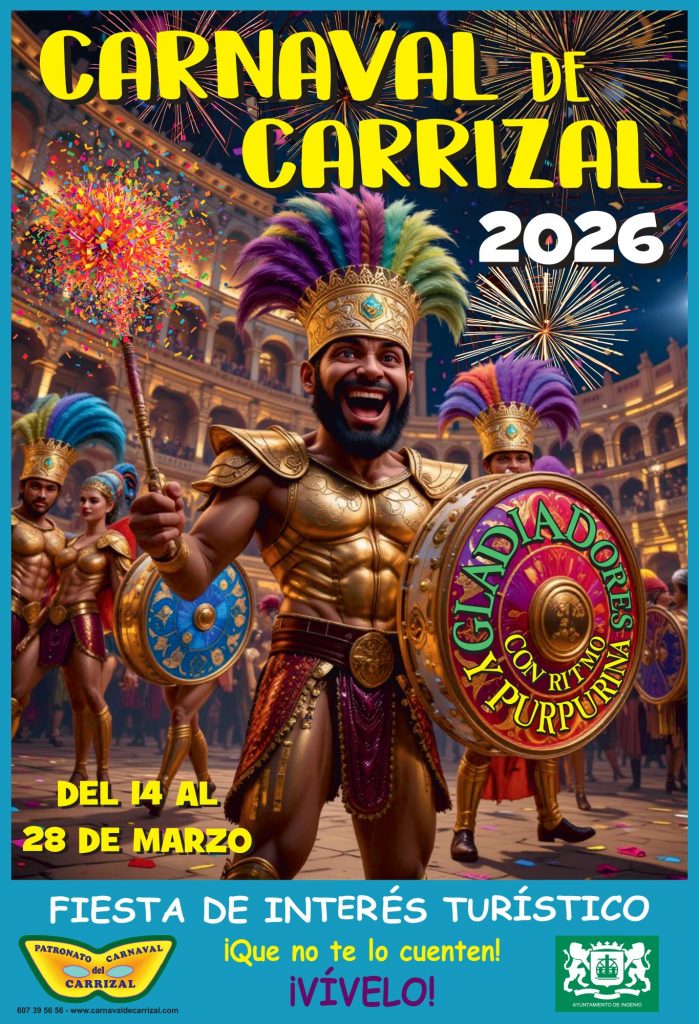 El carnaval volverá a tomar las calles del municipio con la celebración del Carnaval de Carrizal 2026, que se desarrollará del 14 al 28 de marzo bajo la alegoría “Gladiadores”. La programación, organizada por el Patronato del Carnaval de Carrizal y el Ayuntamiento de Ingenio, ofrecerá dos semanas de actividades festivas pensadas para todos los públicos.