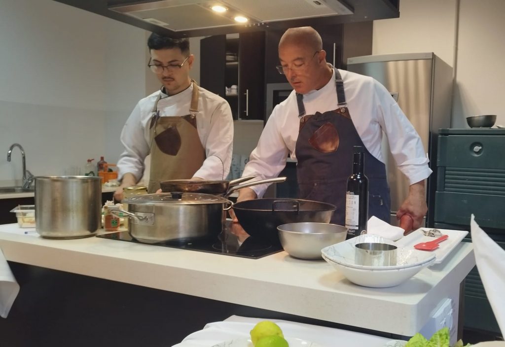 La primera de las actividades programadas enseñó a los asistentes las recetas con las que Nelson Pérez elabora platos tan suculentos como su ceviche a la lubina, crema de calabaza, tagliatelles con boletus y trufa, chocos en salsa y, como postre, su deliciosa tarta de Santiago. La próxima cita de ‘Cocinando con’ tendrá lugar el próximo 25 de marzo en la Casa de la Cultura de Las Rosas, donde las recetas protagonistas serán la ensalada de pollo, la vichyssoise, la merluza en salsa verde, el conejo en salmorejo y el mousse de chocolate.