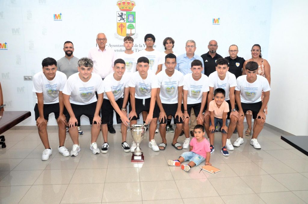 El alcalde de San Bartolomé de Tirajana, Marco Aurelio Pérez Sánchez, ofreció este miércoles una recepción de felicitación y agradecimiento al equipo juvenil del Club Maspasala Sol de Europa por la gesta del ascenso que les permitirá jugar esta próxima temporada 2024-2025 en la División de Honor.