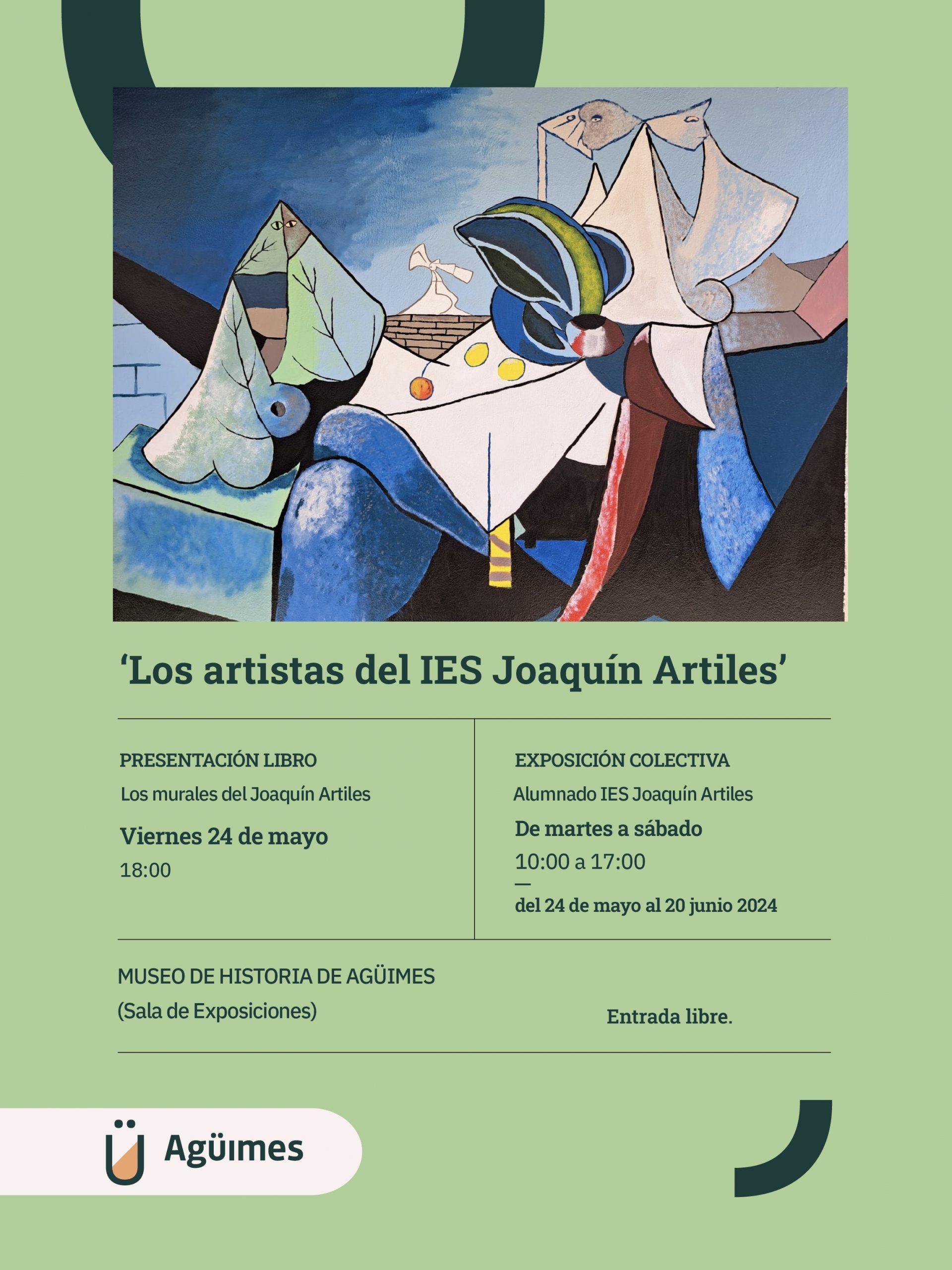 De manera paralela, coincidiendo con la inauguración de la exposición, este viernes 24 de mayo, a las 18:00, el Museo de Historia también acogerá la presentación del libro ‘Los murales del Joaquín Artiles’, del escultor y profesor del centro Paco Suárez. En él se recopilan los murales elaborados sobre las paredes del instituto desde los años 70 hasta la actualidad. La obra destaca la importancia que tiene este tipo de iniciativas para inculcar al alumnado la pasión por el arte y la cultura y despertar su interés por conocer la obra de los artistas más destacados de la historia. Algunos de estos murales se han inspirado en pinturas rupestres canarias, así como en creaciones de destacadas personalidades del arte, tanto canario como internacional, como Keith Haring, César Manrique, Néstor de La Torre o Pablo Picasso.