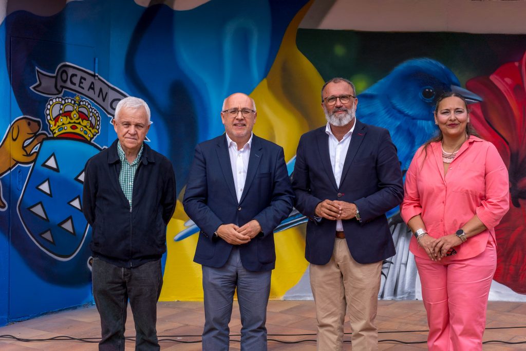 Con la remodelación también se ha cambiado el alumbrado, y se han pintado las paredes con elementos identitarios como la bandera canaria, alguien tocando el timple, imágenes del juego de la zanga o la nueva marca institucional del municipio.