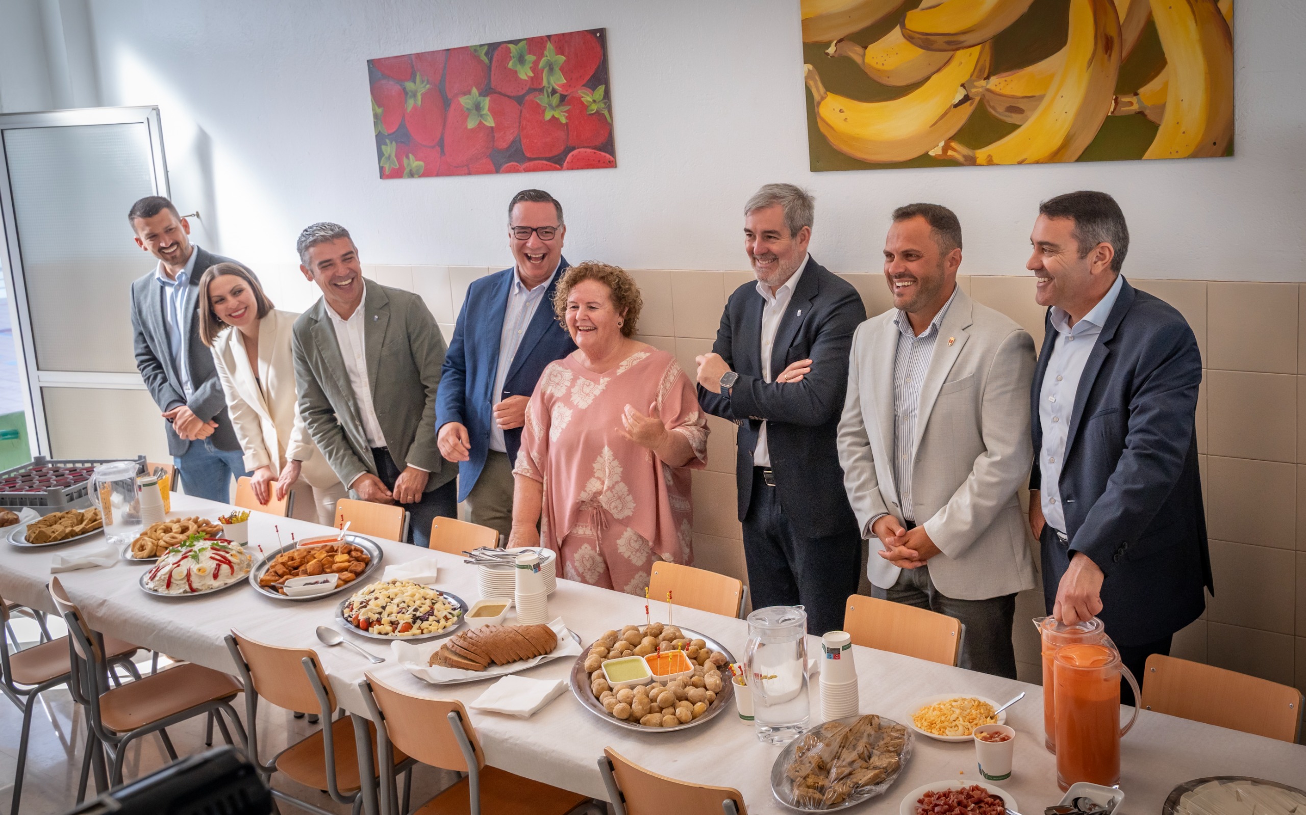 · El presidente de Canarias Fernando Clavijo comprueba los beneficios del programa, que ha inspirado el Real Decreto de Comedores Escolares Saludables y Sostenibles y ha sido reconocida por la Agencia Española de Seguridad Alimentaria y Nutrición, en el CEIP Capellanía del Yábago, uno de los pioneros en implantarla