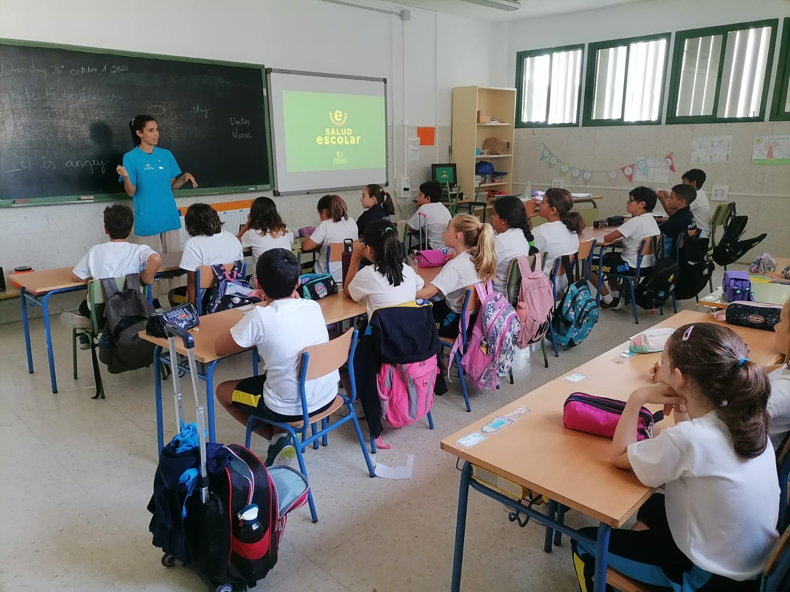 Con el apoyo del Ayuntamiento de Agüimes y del Cabildo de Gran Canaria, tres profesionales seleccionados por el Colegio de Enfermería de Las Palmas realizan su labor en 4 centros de Educación Secundaria (Joaquín Artiles, Playa de Arinaga, Cruce de Arinaga y Nuestra Señora del Rosario), 1 de Formación Profesional (Villa de Agüimes) y 7 de Educación Infantil y Primaria (La Viñuela, Roque Aguayro, Doramas, Beñesmén, María Muñoz, José Melián y Montaña de Los Vélez), adaptando sus actividades a las diferentes edades y niveles educativos. Así, si entre los más jóvenes se incide en cuestiones como la alimentación saludable, el ejercicio físico, la higiene postural, la importancia del aseo personal o la salud bucodental, en Secundaria y Bachillerato ya entran en juego temas como la prevención del consumo de drogas, alcohol y tabaco, primeros auxilios en caso de accidentes, salud afectivo sexual, salud mental, bienestar emocional y técnicas para la gestión de la frustración y el estrés.