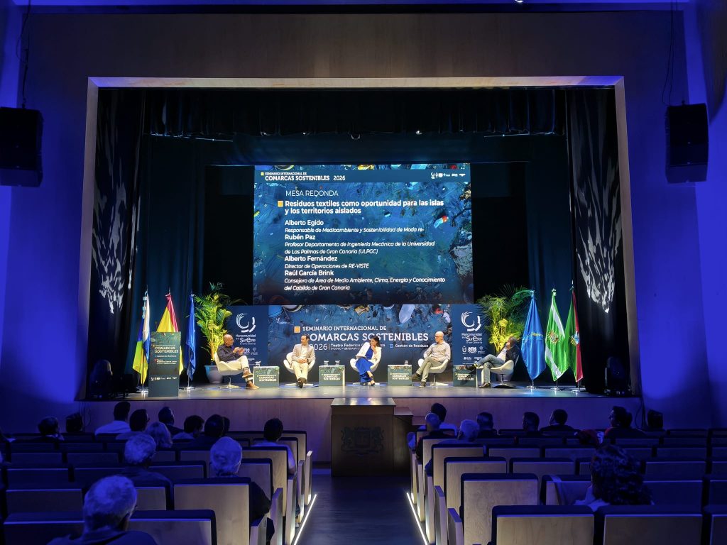 El XIX Seminario Internacional de Comarcas Sostenibles puso punto y final con la mesa redonda “Residuos textiles como oportunidad para las islas y los territorios aislados”, donde participaron Paz; Alberto Egido, ingeniero senior por la Universidad Politécnica de Madrid y responsable de Medio Ambiente y Sostenibilidad de Moda re-; Alberto Fernández, Director de Operaciones de RE-VISTE; y Raúl García Brink, consejero de Medio Ambiente, Clima, Energía y Conocimiento del Cabildo de Gran Canaria. El debate puso sobre la mesa las diferentes iniciativas que están en proceso o ya funcionando en territorios periféricos, como el archipiélago canario, para gestionar de manera sostenible los recursos textiles procedentes de ámbitos tan diferentes como el turístico o el industrial.