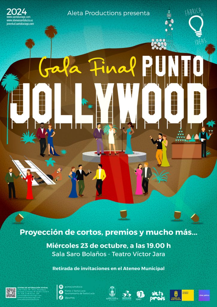 La Casa de la Cultura Sara Bolaños, en el teatro Víctor Jara, acogerá este miércoles 23 de octubre a las 19 horas la Gala de cortometrajes Punto Jollywood, organizada por el Punto J del Ayuntamiento de Santa Lucía de Tirajana.