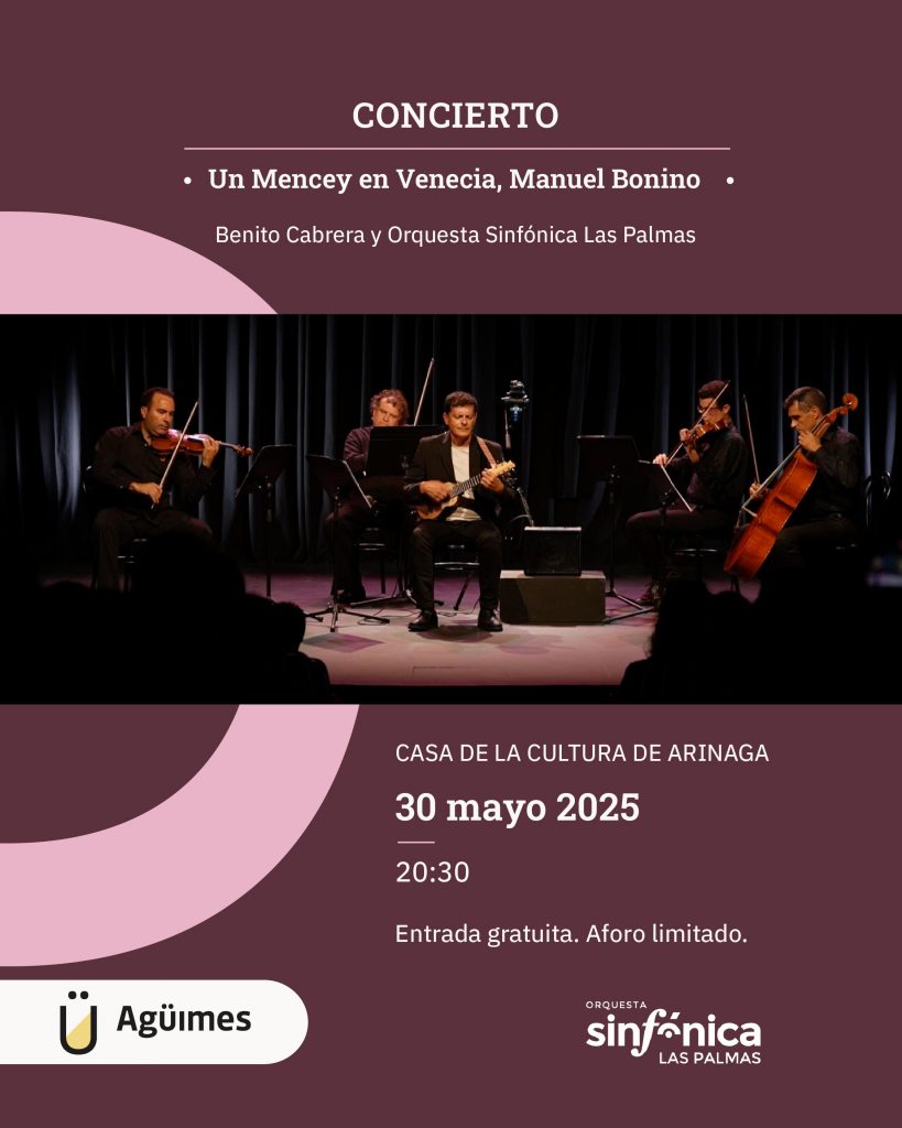 El timplista y compositor Benito Cabrera, acompañado por un cuarteto de cuerdas de la Orquesta Sinfónica de Las Palmas, ofrecerá un concierto este próximo viernes 30 de mayo como colofón a la Quincena Cultural por la celebración del Día de Canarias que, en las últimas semanas, ha llevado la canariedad a los diferentes barrios del municipio. La actuación tendrá lugar a las 20:30 en la Casa de la Cultura de Arinaga, con entrada gratuita hasta completar aforo.