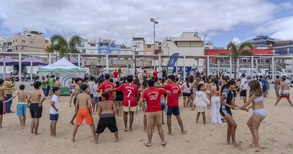 La Asociación Española Contra el Cáncer y el Ayuntamiento de Mogán han celebrado una nueva edición del reto “Contra el humo, mójate”, una iniciativa dirigida a alumnado de 1º de ESO de los centros educativos del municipio con el objetivo de concienciar sobre los efectos del tabaco, los cigarrillos electrónicos, vapers y otros dispositivos para fumar. Tras participar durante la semana en talleres formativos, cerca de una centena de estudiantes han disfrutado este viernes de una jornada lúdico-deportiva en la playa de El Perchel, en Arguineguín, visibilizando de esta forma los riesgos del tabaco y los beneficios del deporte para la salud.