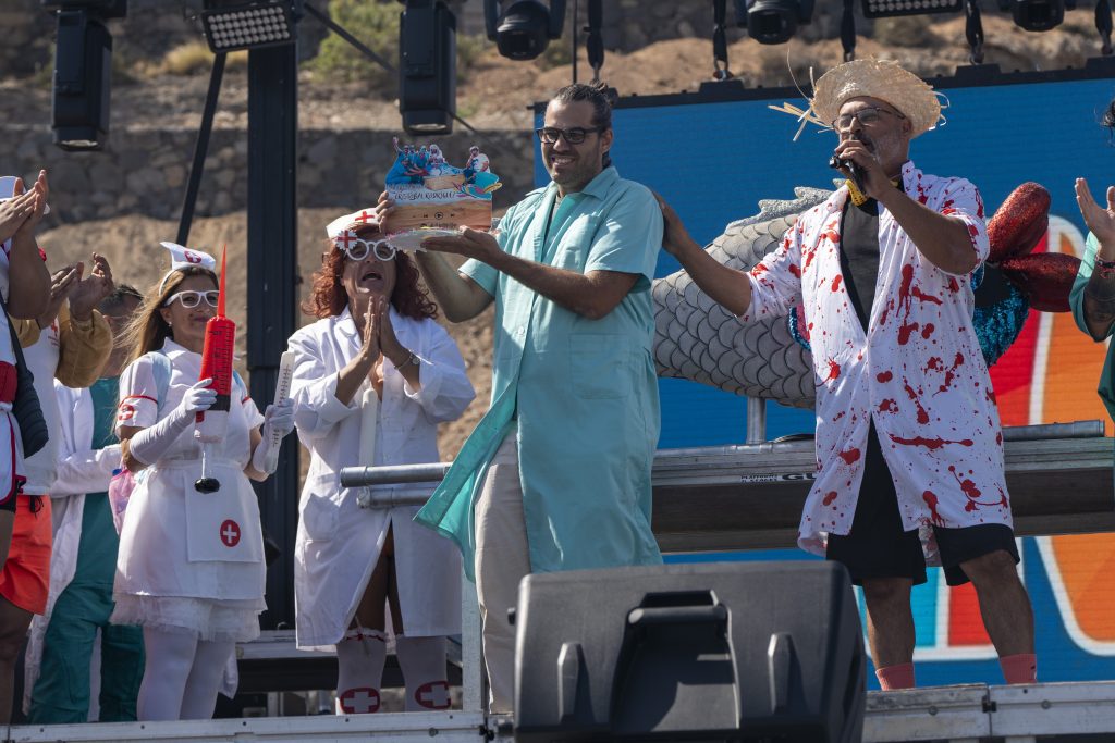 Los turistas se agolpaban con sus móviles para inmortalizar el momento en el que la sardina era trasladada en una comitiva en la que no faltó la buena música de la Banda Isleña, los doctores, enfermeros, socorristas ¡y hasta el papa! Ante tal acontecimiento, se personó también en el lugar la edil del área de Turismo, Eventos y Festejos, Yilenia Vega para desear una pronta recuperación a la afectada y animar todos los presentes a sumarse a la fiesta que continuaría en el Anexo II de Playa del Inglés con el ya consolidado Carnaval al Sol.