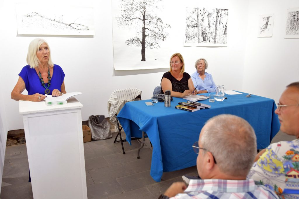 La escritora inglesa Jeannie van Rompaey, afincada en Maspalomas desde hace cerca de 25 años, ha presentado su último libro, ‘A cuatro horas de Londres’ (‘Four hours from London’), en el Centro de Arte Casa Saturninita. La segunda teniente de alcalde y concejala de Educación y Cultura, Elena Álamo Vega, y la presidenta del Club Inglés de Las Palmas, Betty Burgess, actuaron como testigos y presentadoras de la autora.
