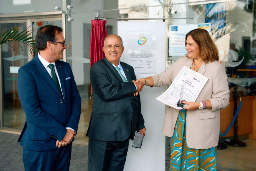 El acto ha estado presidido por la presidenta de la Autoridad Portuaria de Las Palmas, Beatriz Calzada, quien ha recibido el distintivo por parte del presidente de la IAEA, Fernando Rodríguez, y del responsable de la Cátedra de Explotación de Puertos de la Escuela de Ingenieros de Caminos, Canales y Puertos de la Universidad Politécnica de Madrid y miembro de la IAEA, Alberto Camarero. Además, durante el acto se ha descubierto una placa conmemorativa ubicada en la entrada del edificio de la Autoridad Portuaria.
