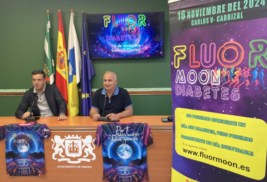 Coincidiendo con la conmemoración del Día Mundial de la Diabetes, en la mañana de este 14 de noviembre, se presentaba la carrera nocturna ‘Flúor Moon Diabetes’ que tendrá lugar este sábado 16 en la Avenida Carlos V de Carrizal y que en esta sexta edición ya cuenta con unas 1900 personas inscritas. En el acto de presentación participaron el concejal de Salud Pública del Ayuntamiento de Ingenio, Rubén López, y el organizador del evento, Justo Santana.