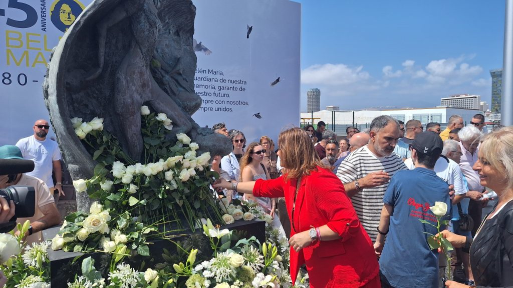 La presidenta de la Autoridad Portuaria de Las Palmas, Beatriz Calzada, ha participado hoy en el homenaje que, cada 25 de julio, rinde la comunidad portuaria a Belén María Sánchez Ojeda, la joven que falleció durante una protesta laboral hace 45 años.