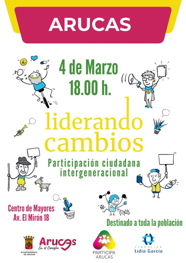 La concejalía de Participación Ciudadana imparte el proyecto, “Liderando Cambios”,el cual se llevará a cabo el próximo día 4 de marzo a las 18:00 horas en el Centro del Mayor de Arucas.