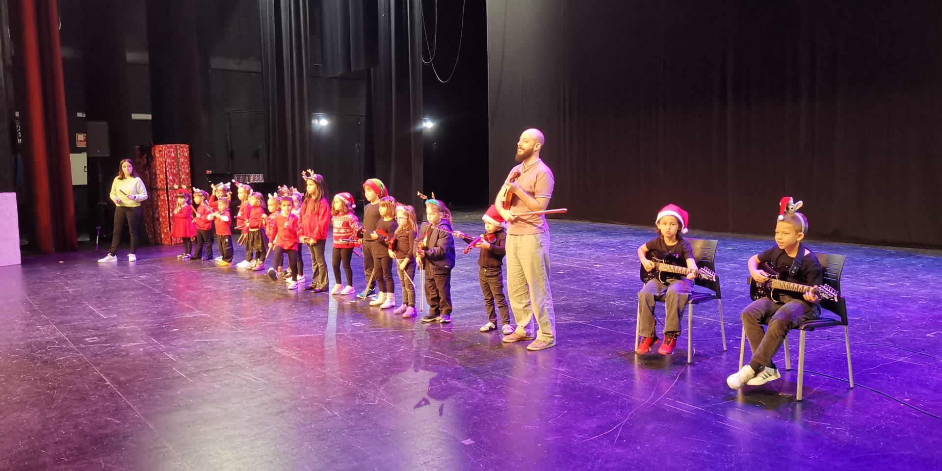 La Escuela Municipal de Música, Danza y Teatro de Agüimes celebró este martes, en el Teatro Auditorio Agüimes, su tradicional Concierto de Navidad. Una cita muy esperada en la que los protagonistas fueron los cerca de 170 alumnos y alumnas que se subieron al escenario para demostrar todo lo aprendido a lo largo del curso, en un ambiente lleno de ilusión, algunos nervios y, sobre todo, espíritu navideño. El concierto contó también con la participación del profesorado y se desarrolló en dos pases para que todas las edades tuvieran su momento especial.