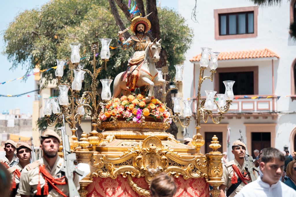 A las 11.40 será el turno de la Procesión Cívica con el traslado del Pendón Real Bajo Mazas con la corporación municipal desde las Casas Consistoriales al Santuario de Santiago, que acogerá a las 12.00 la Eucaristía Solemne en Honor de Santiago Apóstol presidida José Mazuelos Pérez, Obispo de Canarias. Y a su finalización, a las 13.00 horas, tendrá lugar la siempre esperada y emocionante Procesión de Santiago de Los Caballeros por las calles del casco histórico.