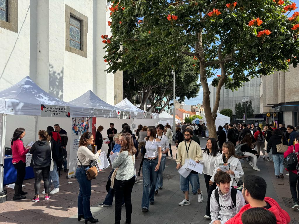 San Gregorio se convirtió en la mañana de este lunes en un lugar lleno de oportunidades laborales. El casco comercial de Telde acogió en este inicio de semana la Feria de Formación Profesional y Empleo, a la que acudieron más de 500 estudiantes de centros educativos teldenses.