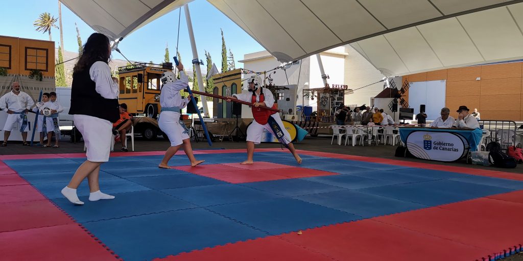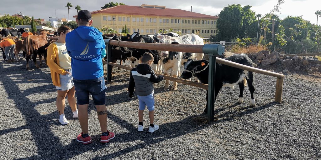 El día comenzó sobre las 10:00 con la celebración de una feria de ganado en el terreno anexo al Teatro Auditorio, donde se dieron cita 46 ganaderos de todos los rincones de la isla. Cerca de 200 animales, entre los que se contaban toros, vacas, burros, caballos, ovejas o carneros, compitieron por llevarse alguno de los más de 11.000 euros en premios. Al mismo tiempo, en la Carpa del Teatro Auditorio se llevaron a cabo dos eventos simultáneos: un entretenido concurso de puzzles por parejas y la final de la Copa Cabildo de Gran Canaria de lucha del garrote, donde 24 competidores de todas las edades exhibieron su maestría en el uso de esta técnica ancestral, que se remonta a los antiguos pobladores de las islas.