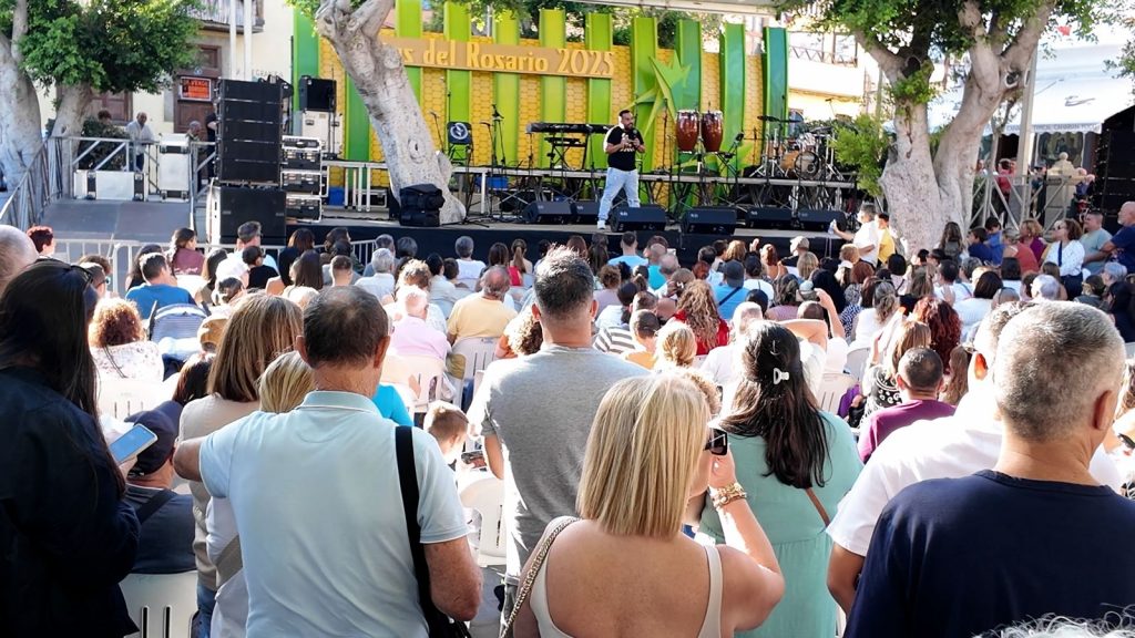 Las actividades continuaron con la sesión de humor del comediante conejero Kike Pérez, en la plaza del Rosario, arrancando las carcajadas de los presentes. A su actuación le siguió una colorida batalla de flores y el concierto ofrecido por el grupo Mujeres D, que cerró la nutrida programación del domingo y un fin de semana lleno de tradición, cultura y diversión. El programa de las fiestas llegará oficialmente a su fin el próximo día 12 de octubre, con la celebración del Día Internacional de la Agricultura y Ganadería, y el Día Mundial de la Alimentación, en el anexo al Teatro Auditorio.