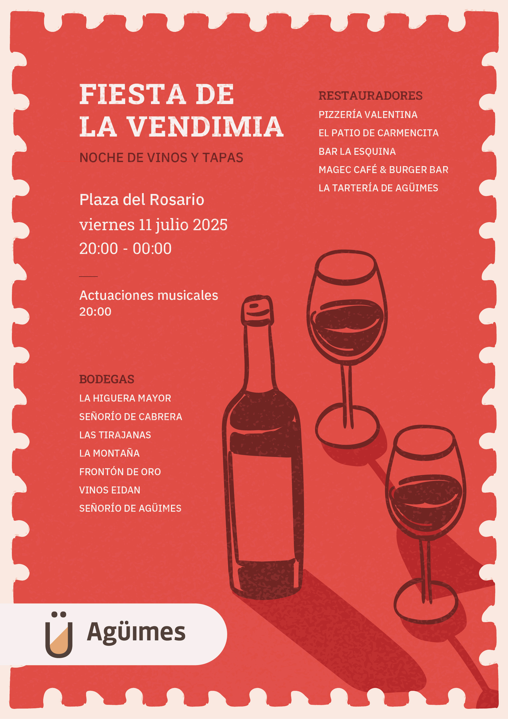 La Fiesta de la Vendimia de Agüimes se ha consolidado como un evento singular que aúna cultura, gastronomía y tradición, y que rinde homenaje a los hombres y mujeres del campo que, año tras año, mantienen vivo el cultivo de la viña en esta tierra. La celebración tiene lugar a pocas semanas del inicio oficial de la vendimia, momento que dependerá del grado de maduración de la uva, una variable directamente relacionada con la climatología.