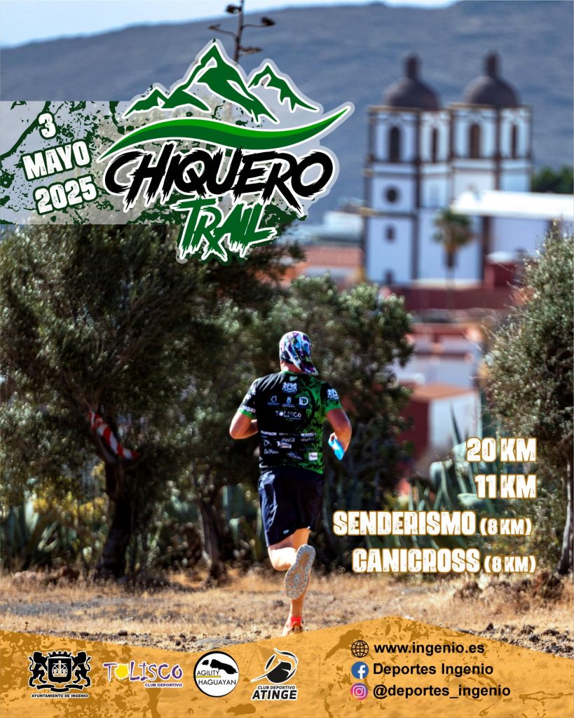 A partir de mañana, miércoles 26 de febrero, quedará abierto el plazo de inscripción para la III edición de la Chiquero Trail, la popular carrera de montaña que tendrá lugar el próximo 3 de mayo en el municipio de Ingenio. La prueba, organizada por el Ayuntamiento a través de la Concejalía de Deportes, en colaboración con los clubes deportivos Tolisco, Haguayan y Atinge, ofrecerá cuatro modalidades de participación adaptadas a distintos niveles y preferencias: Chiquero Canicross (8 km), Chiquero 20 km, Chiquero 11 km y Chiquero Senderismo (8 km), ofreciéndose también la posibilidad de participar por equipos mixtos en las distancias de 11 Km y 20 Km.