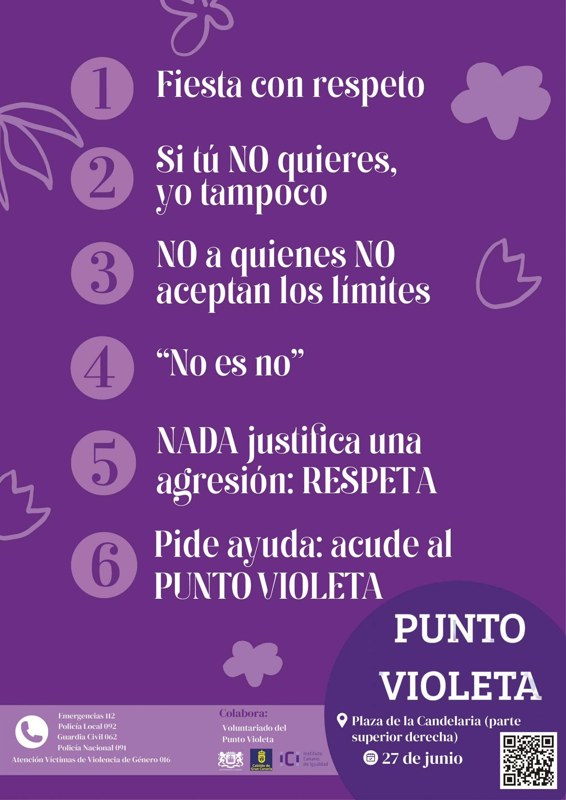 Un ‘Punto Violeta’ estará instalado durante la noche de este viernes, 27 de junio, en la Plaza de la Candelaria durante la celebración de la ‘Noche Joven’ enmarcada en las fiestas en honor a San Pedro y San Pablo 2025. El horario será de 22:00 a 2:00 horas.