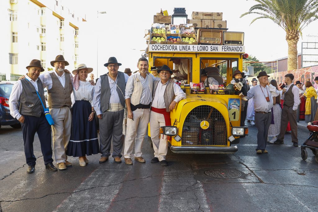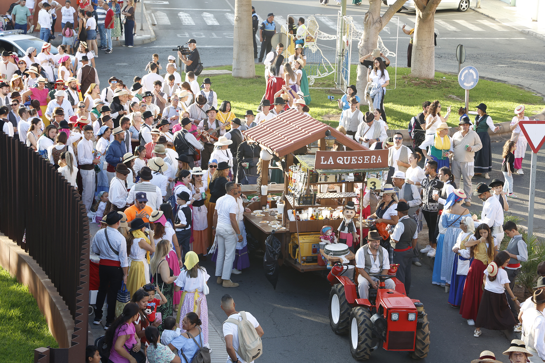 La tarde contó con la participación de más de 2.000 personas que, ataviados con vestimenta tradicional, participaron del recorrido que estuvo encabezada por la carreta El Coche de Hora, con la agrupación El Cañizo; El Tablero la Agrupación Roca Canaria y su cuerpo de baile Horizonte Maspalomas; la carroza Telde ‘La Tartana’ con los Tartaneros; El Patronato (San Fernando) con la agrupación folclórica La Parranda Las Dunas; y la carreta La Quesera con el grupo Los Fiesteros. Las Agrupación Folclórica alegraron todo el recorrido con la música tradicional canaria y tras llegar a la Plaza de San Fernando los grupos de romeros, asociaciones y colectivos depositaron su ofrenda ante la puerta de la Iglesia de San Fernando, ofrenda que será entregada a la Cáritas.