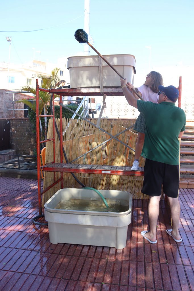 En la Plaza de la Candelaria se acomodó el barquillo de madera Gran Canaria, recuperado este año por los alumnos del curso Técnico Deportivo de Vela del CIFP Felo Monzón Grau-Bassas de la capital grancanaria, y los visitantes pudieron experimentar una experiencia inmersiva a través de gafas 3D de una regata a bordo de una de estas embarcaciones consideradas como la vela chica de la vela canaria.