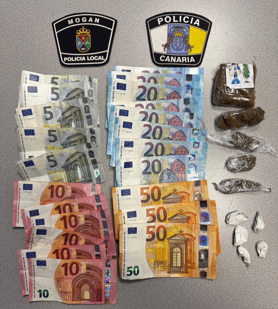 Agentes de la Policía Local de Mogán detuvieron en la madrugada del 5 de enero en Arguineguín a un hombre que portaba hachís y cocaína así como un total de 395 euros fraccionados en varios billetes. Antes de ser interceptado, el individuo iba de acompañante en un vehículo cuyo conductor no tenía carnet en vigor, siendo este último igualmente detenido por un presunto delito contra la seguridad vial.